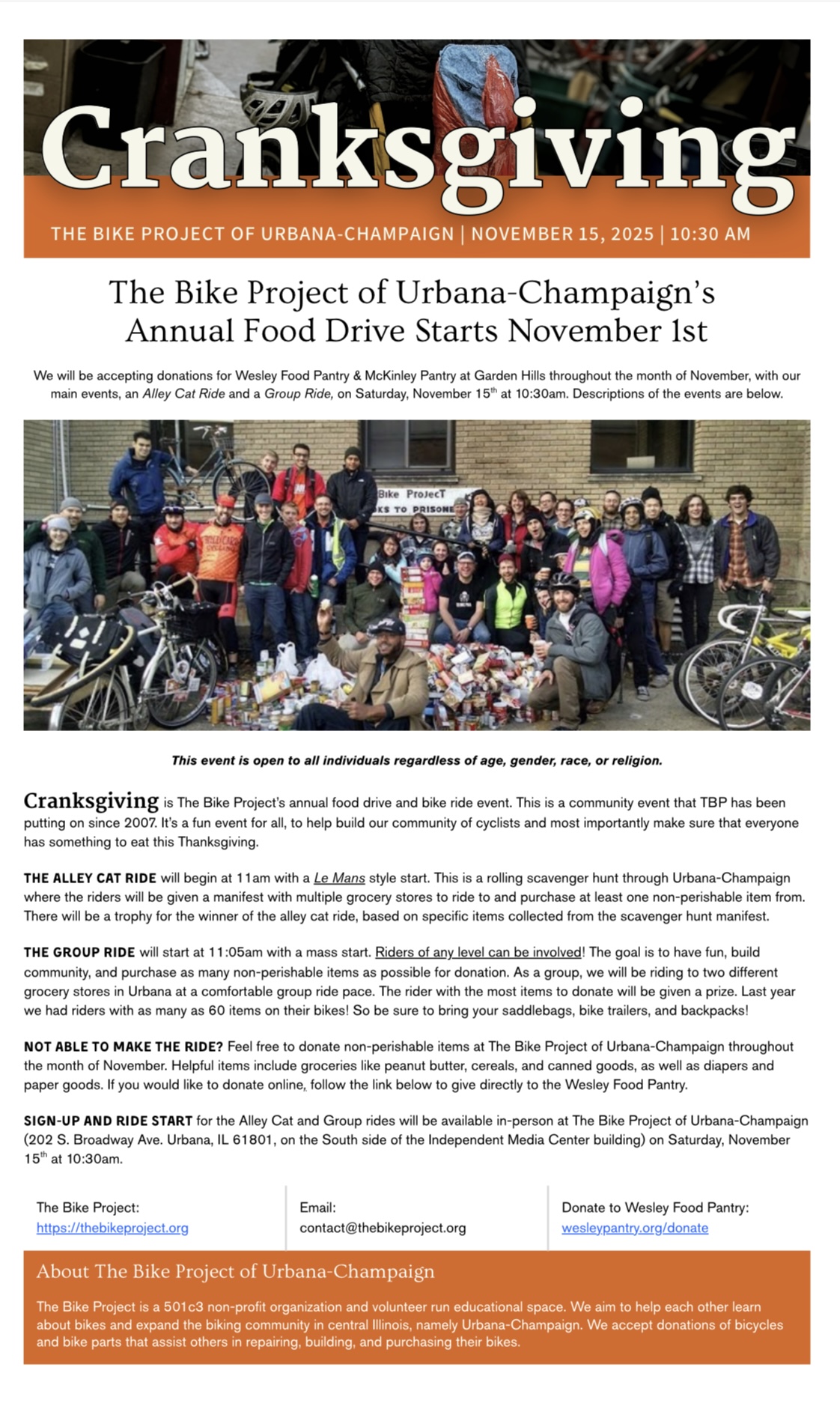 Please RSVP: Cranksgiving: Annual Food Drive & Ride